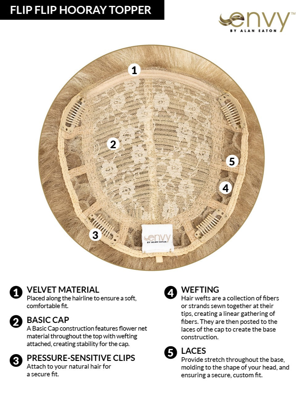 Cheers to our NEW FLIP-FLIP HOORAY Topper, whose light, loose curls give curly styles just the right amount of face-framing volume. The breathable Open Top construction, 15 find-your-match shades, and layers designed to fall into place make this Topper look and feel breezy and seamless.