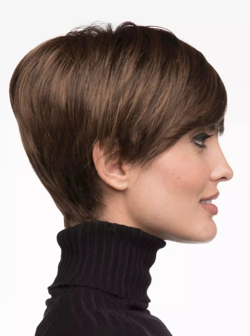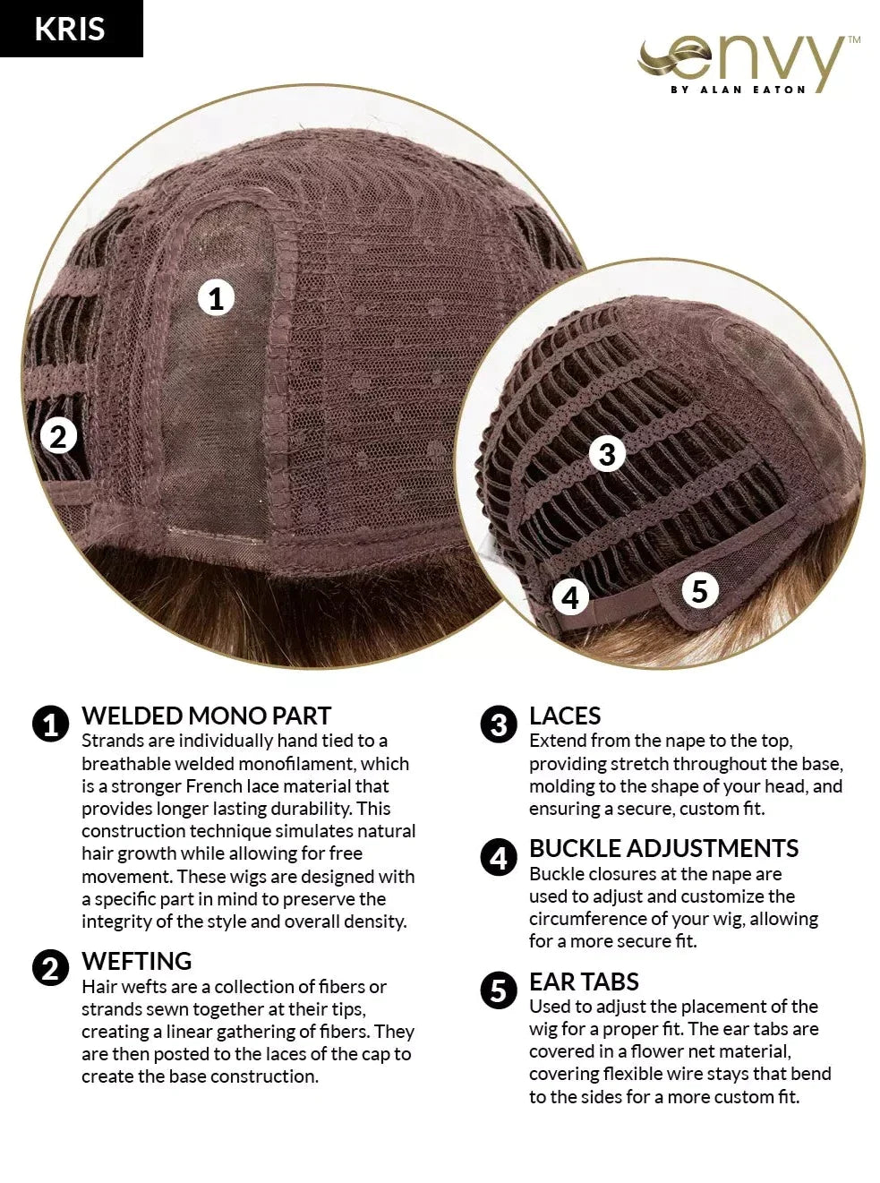 Kris by Envy is a stylish and chic wig, designed to achieve a pixie look at its finest. The sweeping bangs add a playful retro touch while maintaining ease and sophistication. With a monofilament part, it creates the illusion of real hair growth. The synthetic hair is ready to wear and has a natural look and feel. The cap's open wefting allows for better airflow, keeping the scalp cool and comfortable. Kris is available in bold, multidimensional shades that correspond with current hair trends. This celebrity-inspired wig is perfect for those who want to embrace the Kris Jenner look.