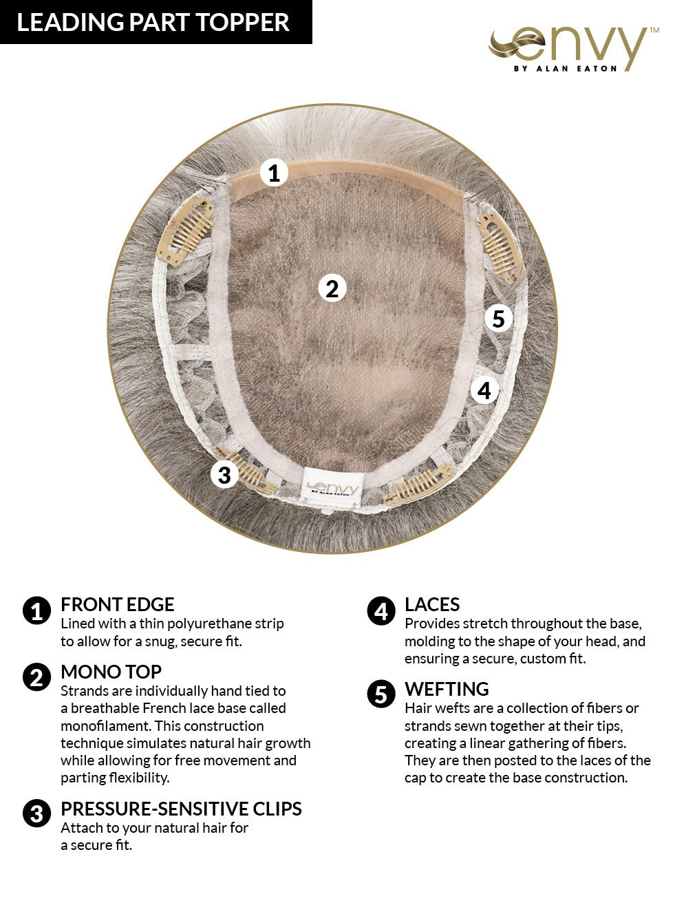 An adjustable part is the star of our NEW LEADING PART Topper—allowing you to make the style totally your own. 15 multidimensional shades and our Mono Top construction add up to full, natural-looking coverage—providing a depth and movement you’ll want to run your fingers through.