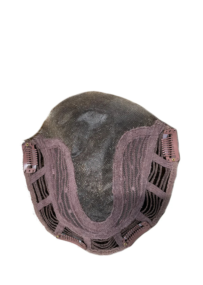 Lace Front Mono Top is a mid-length hairpiece that gives the effect of a full cap wig. This hairpiece is specifically designed to bring volume to the thinning crown — a quick addition to top off your hair for a fuller look. The movement and versatility of monofilament crowns provide the appearance of natural growth and incredible comfort. The lace Front top creates the look of natural hair growth along the front hairline. Lace Front Mono Top Bangs 16 is our first topper with precut bangs and a wide, extended center mono part. Lace front, HF, the same luxurious BT fiber, and the original design with bangs were created for this special edition. It is genuinely first in its design and craftsmanship.