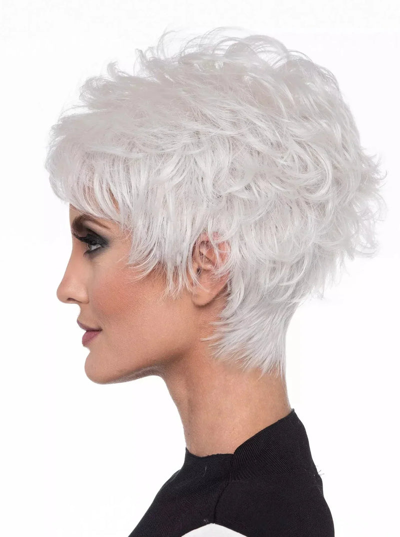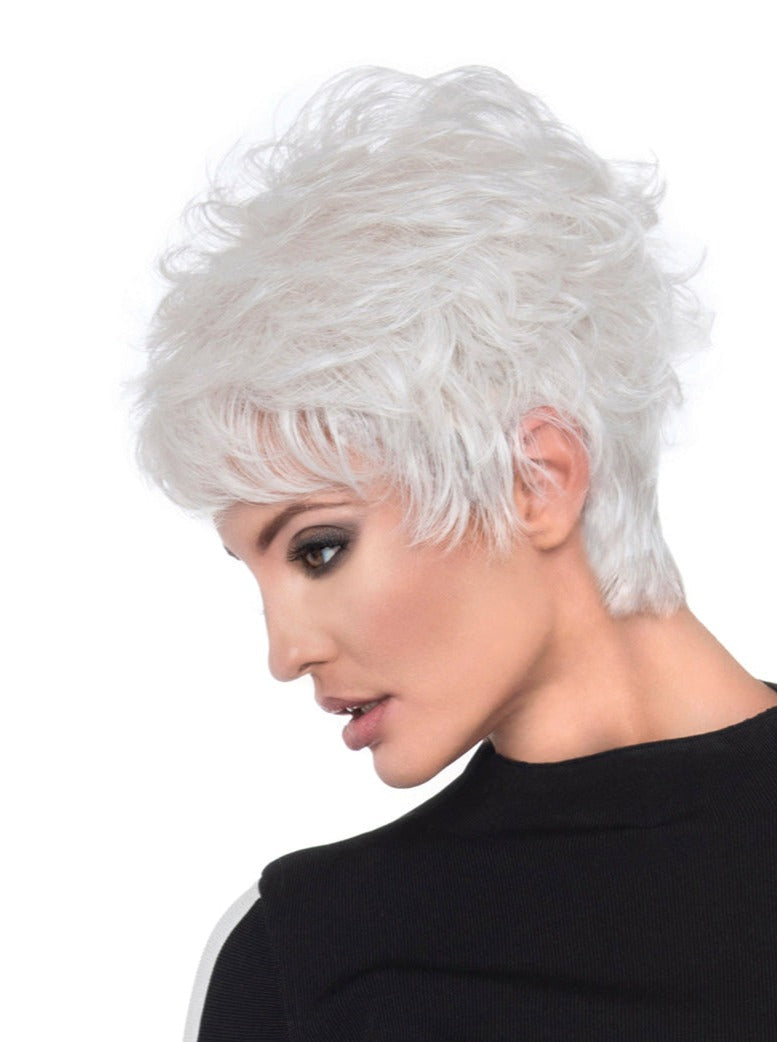 There's so much to love about our Olivia Wig by Envy Wigs like masterfully spiked layers and icy cool tones. Texture rules the day with this modern play on the classic nape-hugging pixie wig. Your scalp will enjoy the gossamer lightness of the capless construction, while the versatility of a human hair blend wig will appeal to your creative side. Heat set, curl, or straighten to make Olivia all your own!