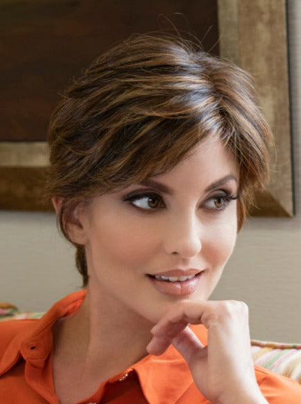 Partially hand-tied cap – each individual hair is carefully hand tied to the base. This creates natural movement and allows the hair to move freely. The soft stretch cap makes it more comfortable to wear and is ideal for a sensitive scalp.