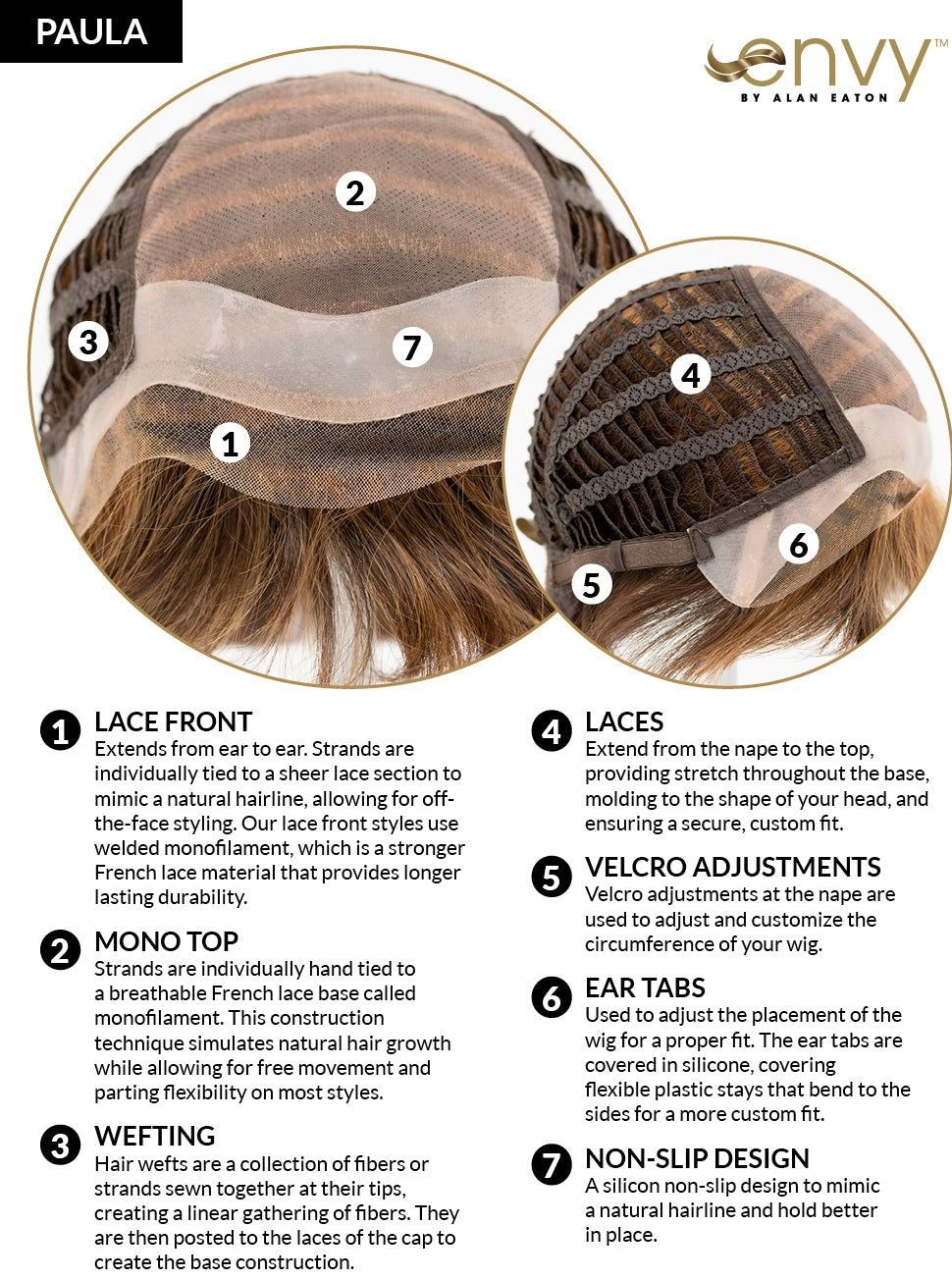 Paula from the EnvyHair collection is a casual crop with unbeatable volume, movement, and a lowkey asymmetric style. The ear-to-ear lace front allows for the most natural hairline appearance. Exclusively from Envy, the Envyhair blend—30% human hair and 70% heat-friendly fiber—means you can curl, straighten, and blow dry this wig just like your natural hair!