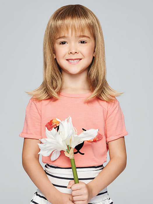 Pretty in Fabulous by Hairdo part of the KIDZ Collection is a long, straight with full front bang. Featuring in a heat synthetic fibres which allows you to use thermal styling tools up to 180c enhance your wig design from straight to curly, offering styling versatility.