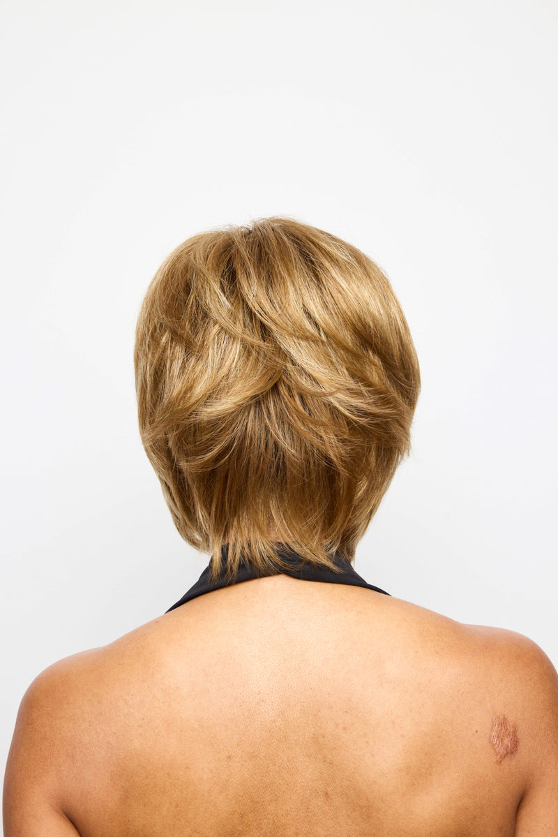 Reese Large by Noriko part of the Rene of Paris Company, is a gorgeous bouffant, with a swept side bang. Featuring in a lightweight basic cap construction, with wefted sides and back allowing comfort and maximum scalp cooling. Made with a permatease top which is a teasing, short haired, crimping effect on the roots to create more lift and volume.