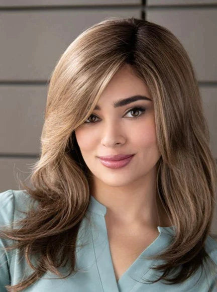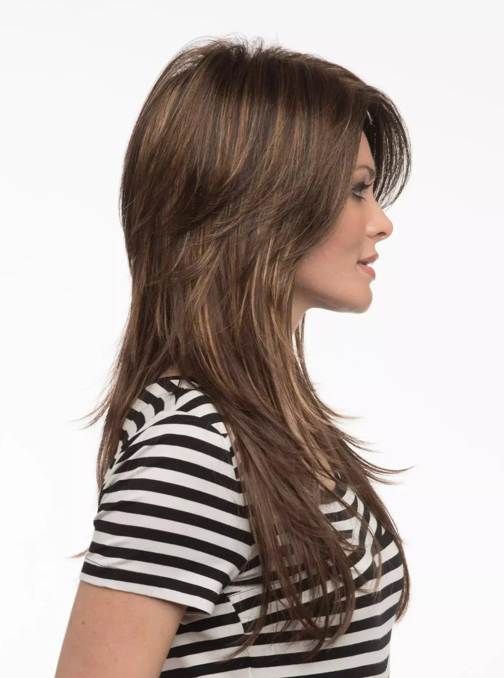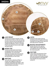 Experience the ultimate in style and versatility with Sheena by Envy, a stunning long, layered, and edgy synthetic wig. With almost 16 inches of cascading layers, this wig adds a touch of glamour to any look. The hand-tied monofilament top allows for a customizable part, while the pre-cut lace front ensures effortless wear. The side bang can be styled away from the face or trimmed by your stylist for a more personalized touch. The hair is sleek and straight with textured ends, creating a modern and chic aesthetic. Get salon-worthy locks in no time with this long layered cut, perfect for any occasion. The hand-tied lace front and monofilament features blend seamlessly with all skin tones, while adding natural volume and a realistic part for a truly natural look. And with pre-styled synthetic hair, this wig will maintain its shape in any climate, ensuring effortless styling every time.