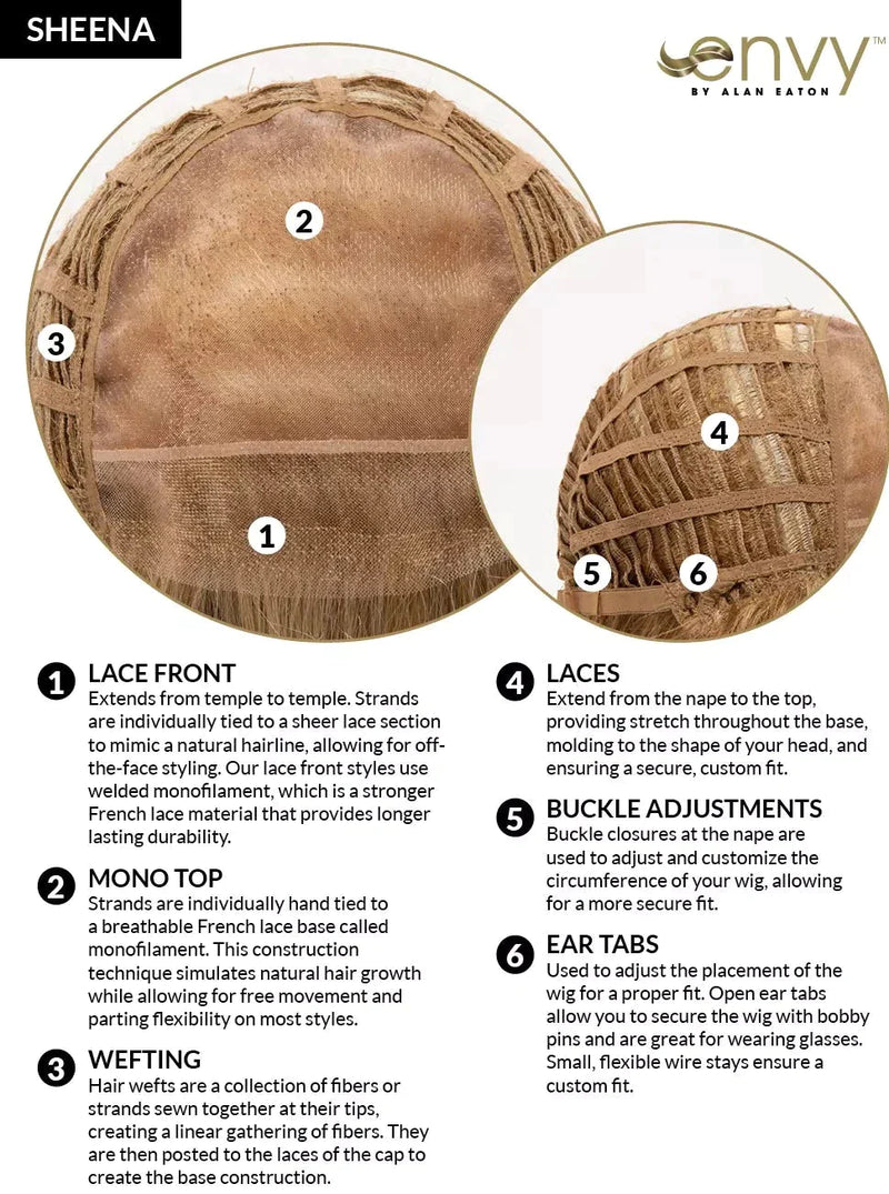 • approx length: Front: 7.75" | Crown: 9" | Sides: 13" | Nape: 15.5"