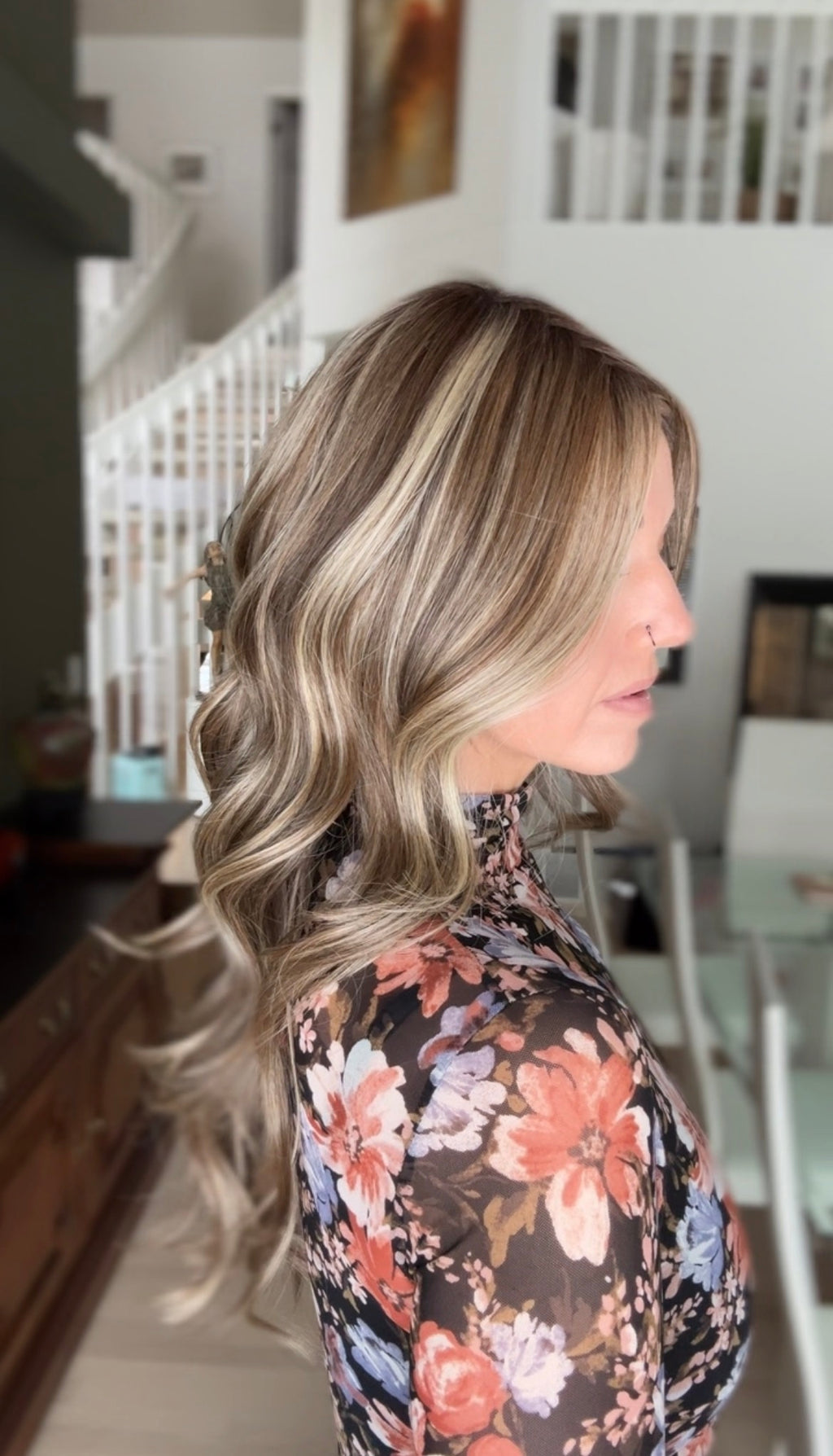 This style offers a relaxed, flowing silhouette with length that falls smoothly past the shoulders. The hair is shaped with soft, blended layers that create natural lift and prevent bulk, allowing the style to move freely and drape beautifully. The wave pattern is loose and organic, giving a lived-in finish that feels natural rather than styled.