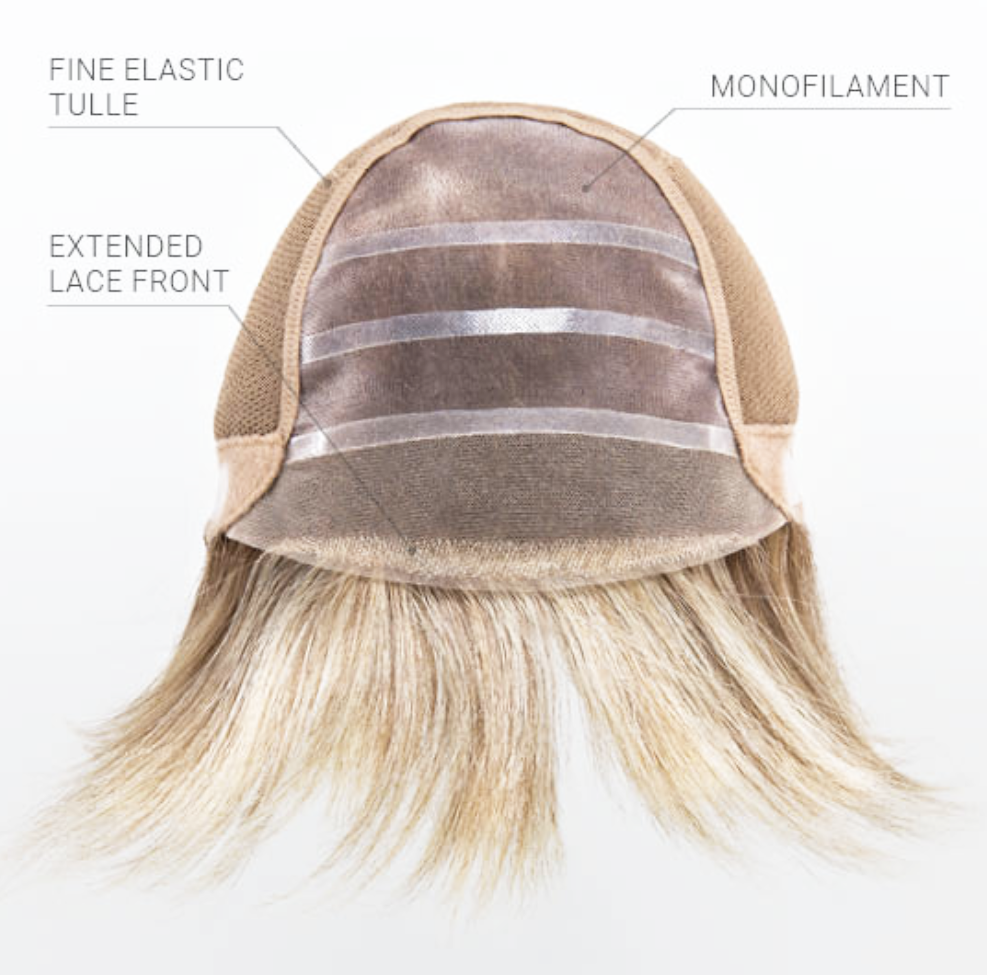 • base design: 100% hand-tied cap – each individual hair is carefully hand tied to the base. This creates natural movement and allows the hair to move freely. The soft stretch cap makes it more comfortable to wear and is ideal for a sensitive scalp.