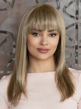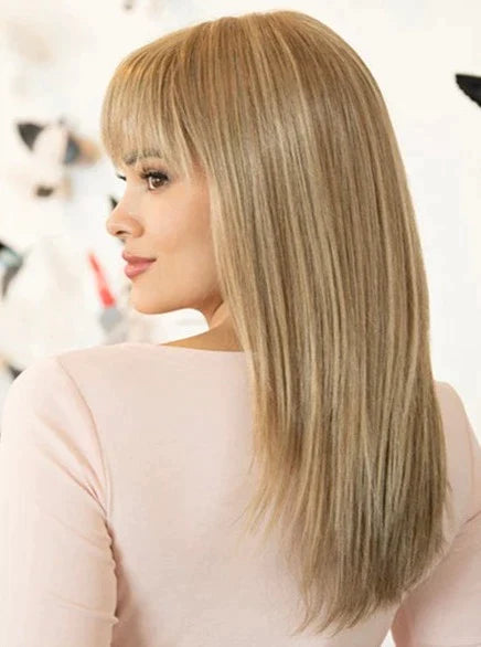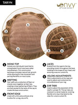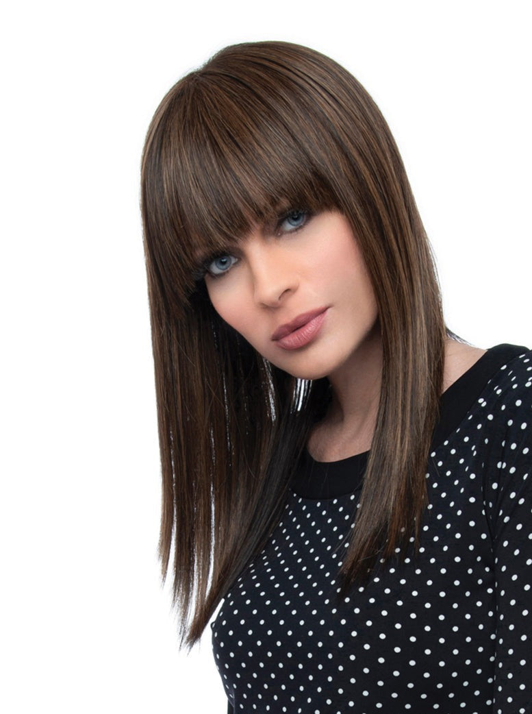 The Envy Taryn Wig boasts a sleek and contemporary design, complete with a blunt bang for added style. The full hand-tied monofilament top allows for versatile parting and enhances the styling options. The wefted sides and back provide optimal air flow. Made with trademarked Envy hair, a blend of 30% human hair and 70% Heat Friendly Synthetic, this wig can be curled or straightened to match your desired look. The full bang can also be customized by your stylist. With its chic and flattering design, this wig features a natural-looking part thanks to the monofilament top and provides natural volume. The hand-tied cap allows for the most natural movement, while the silk chiffon lining on the sides and back ensure a comfortable fit. Plus, the pre-styled and weather-resistant synthetic hair maintains its shape, even after washing. Get ready to turn heads with the Envy Taryn Wig!
