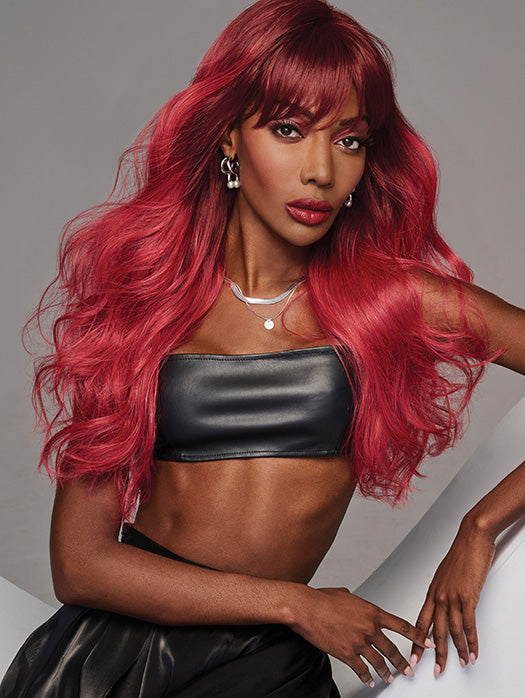 Indulge in the berrylicious beauty of the That's My Jam wig by Hairdo. This long and wavy wig boasts the boldest and brightest shade of berry red, perfect for making a statement. With heat-friendly Tru2Life synthetic fiber, you have the option to wear it straight or curly, adding versatility to your style.