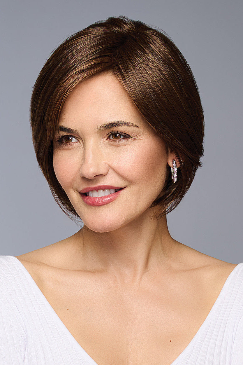 Top Billing 8” by Raquel Welch from the Transformation Collection is a compact version of the popular Top Billing topper. Its monofilament base and sheer lace front create a lifelike scalp appearance for a truly natural finish. Crafted with 8 inches of heat-friendly synthetic fiber, this short topper seamlessly integrates with chin-length hair, enhancing your look with effortless style.
