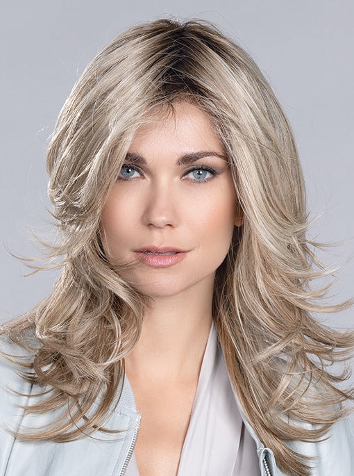 Voice Large from the Ellen Wille Hi Power Collection, just like Voice Average, is a longer wig with stunning face framing layers made to fit a larger head circumference. This wig can be worn sleek straight or curly/wavy with its heat-friendly synthetic fiber. The lace front provides the most natural looking hairline and the monofilament top allows you to part the hair in the direction you please.